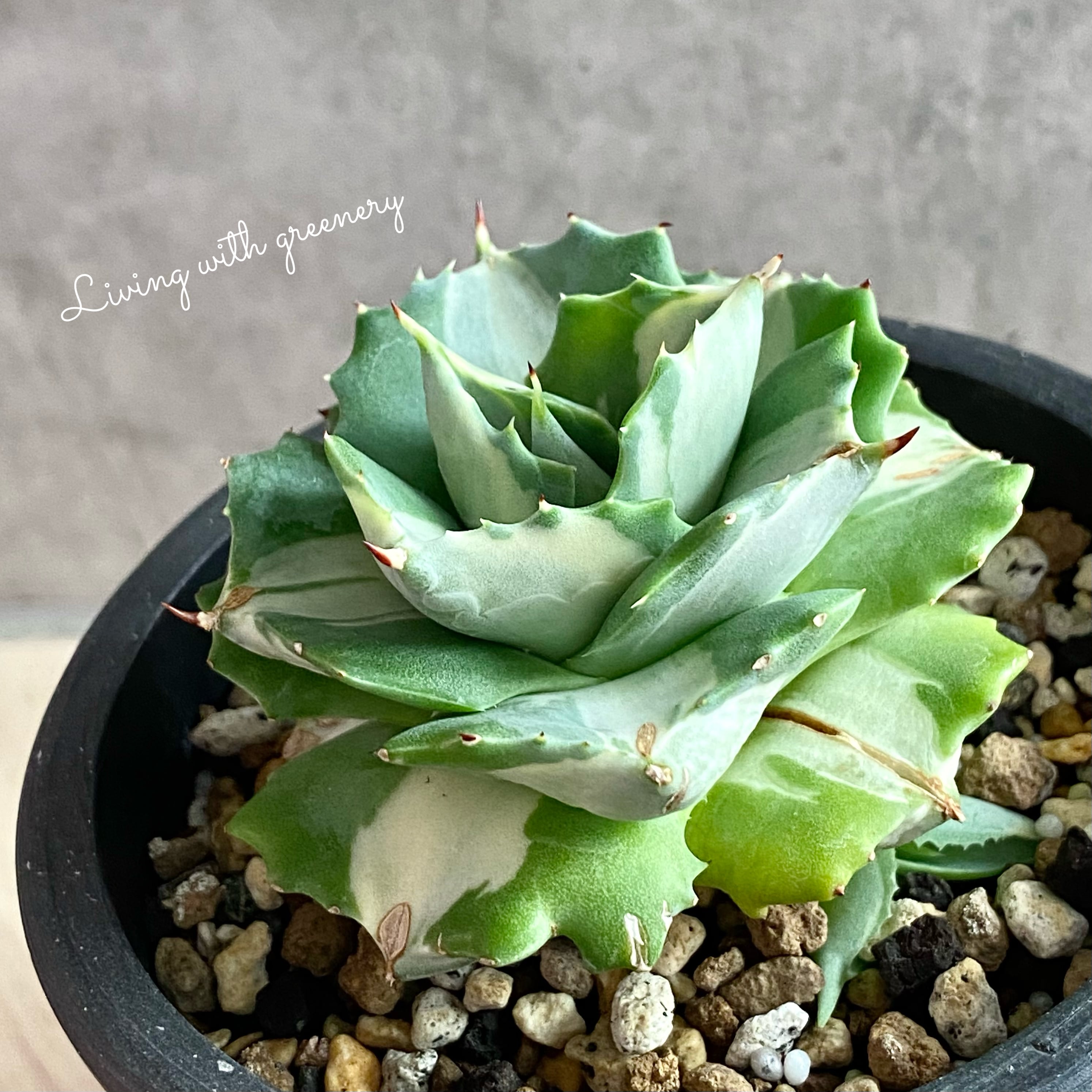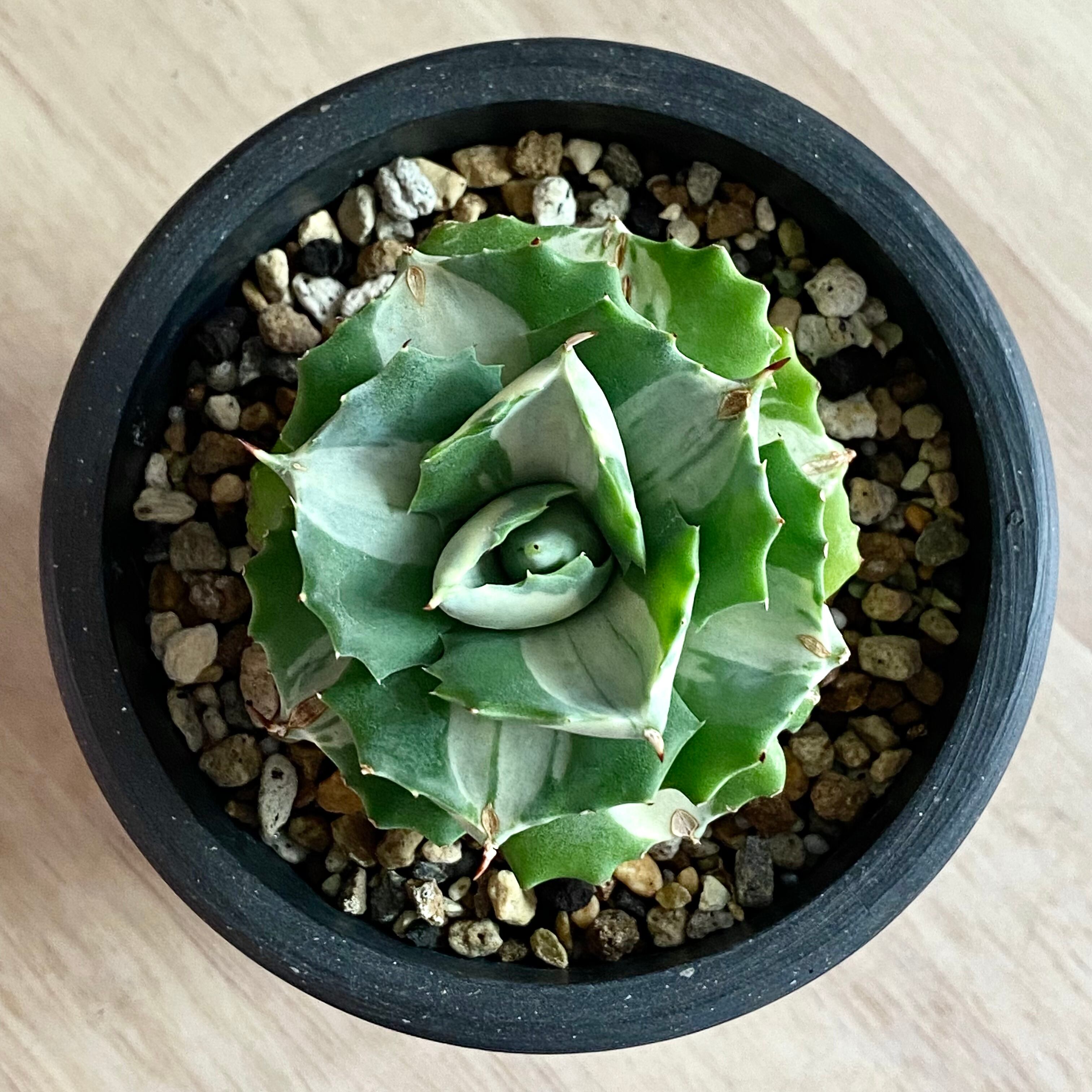 agave 王妃雷神白中斑 /アガベ 【子株付き】【観葉植物】【多肉植物】【インテリア】【鉢込み発送】【発根済】【美株】